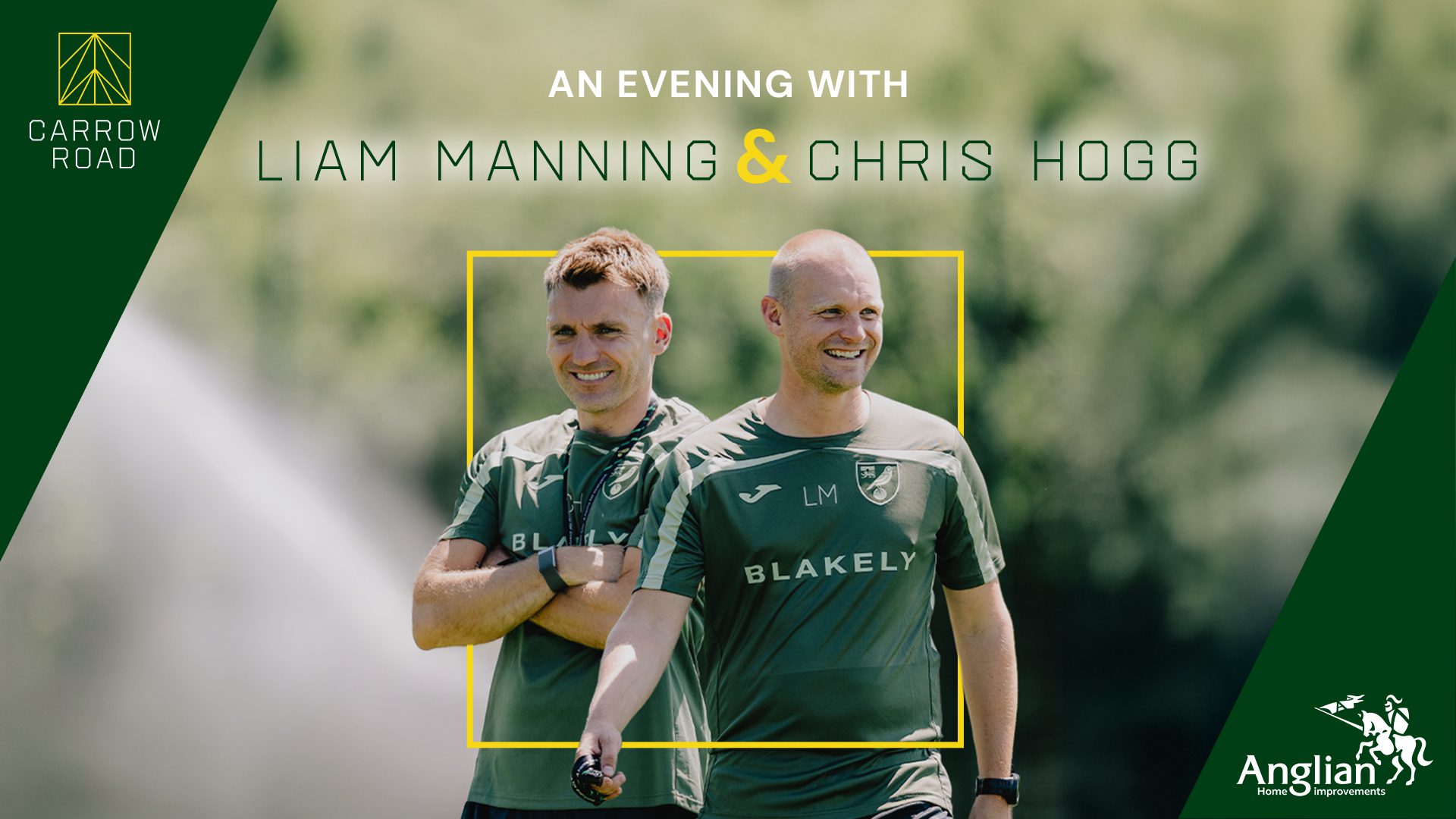 Join us at Carrow Road on Thursday, September 11, for a special evening with Norwich City head coach Liam Manning and assistant head coach Chris Hogg, hosted by Darren Eadie.