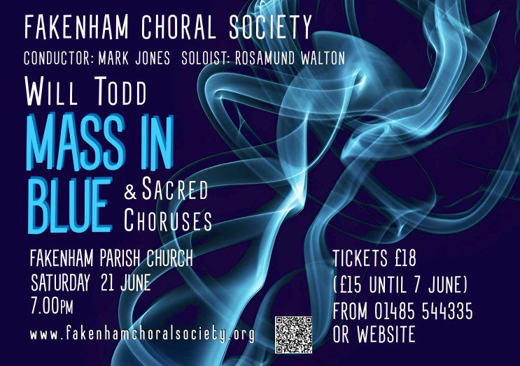 Fakenham Choral Society’s 2025 summer concert will feature contemporary British composer Will Todd’s vibrant and upbeat Mass in Blue, a masterly blend of jazz and blues. This is contrasted with a selection of well-known choral pieces from across the ages, including music by Bach, Faure and Mozart. Fakenham Choral Society’s Musical Director, Mark Jones conducts with special guest soloist, Rosamund Walton.