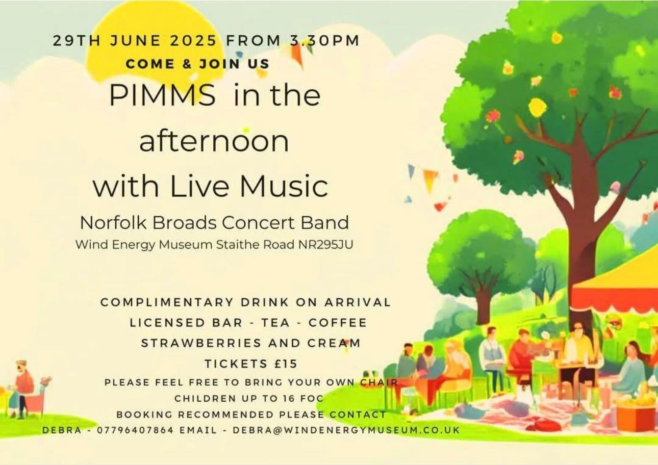 Relaxing afternoon with live music from the Norfolk Broads Concert Band in a peaceful setting.