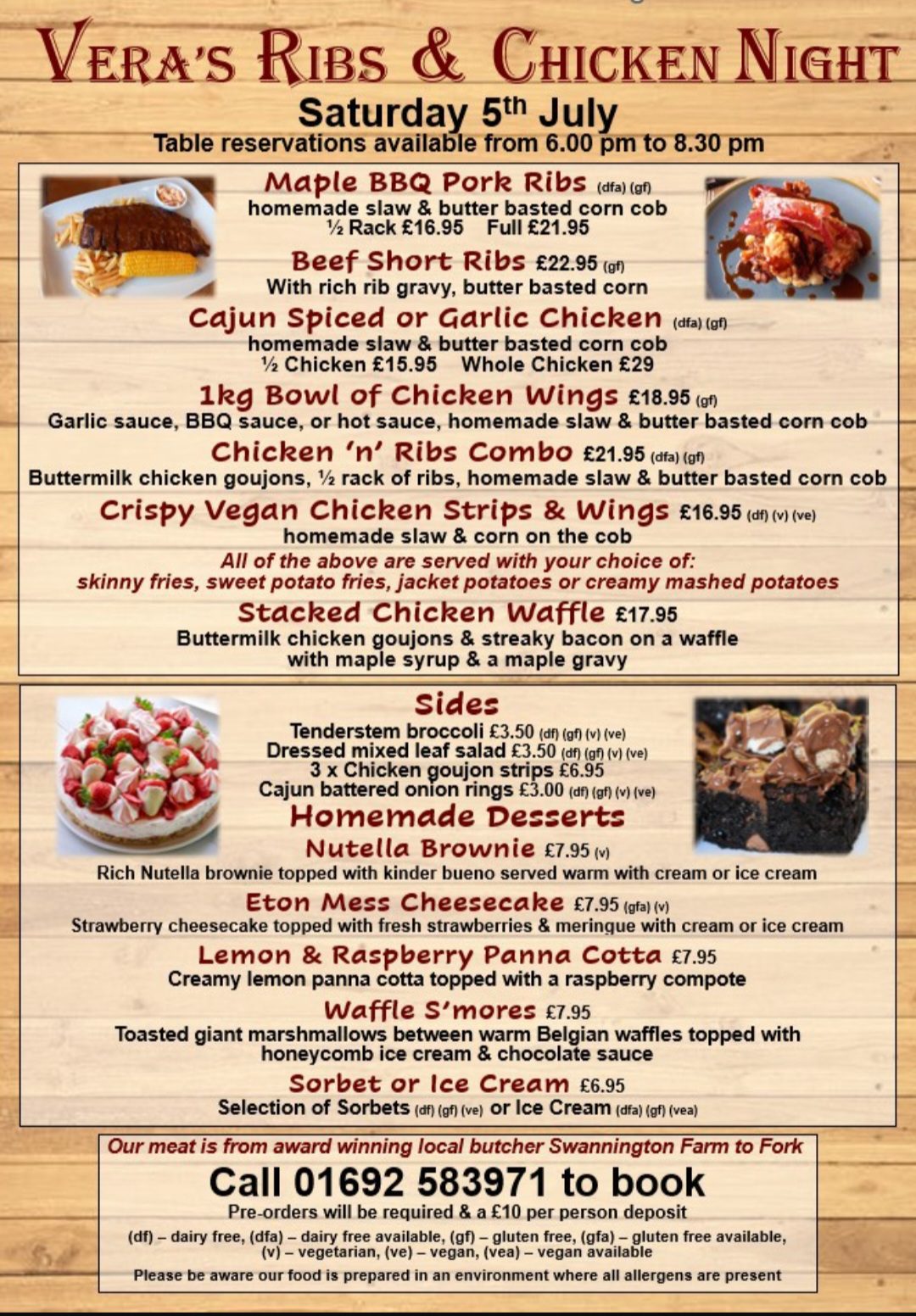 Join us at Vera’s Coffee Shop for our Ribs ‘n’ Chicken Night.