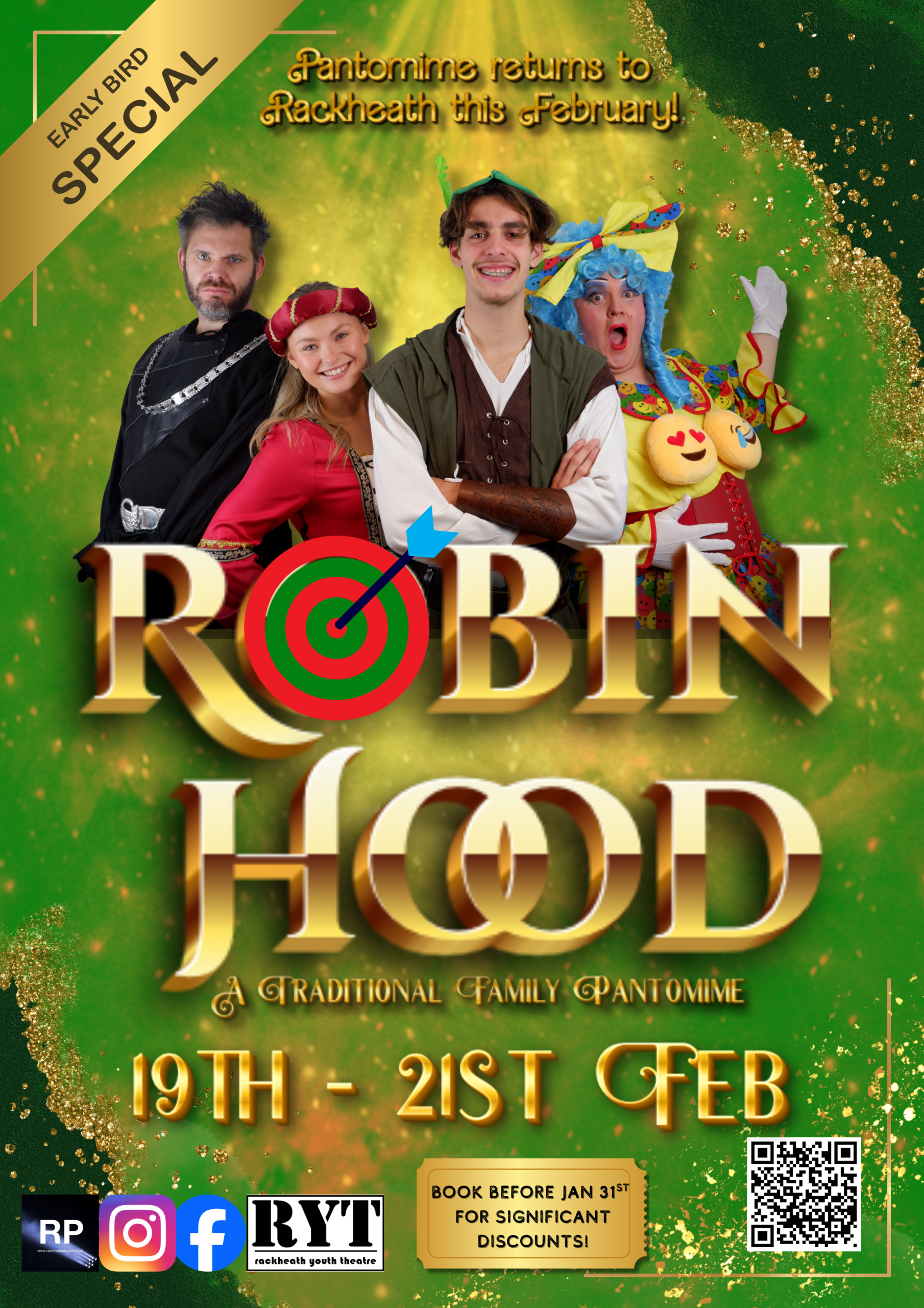 Get ready to laugh, cheer, and join in the fun as the Rackheath Players bring you Bradford and Webster’s Robin Hood: a traditional family pantomime packed with adventure, music, and mayhem! Follow the daring Robin Hood and his band of Merry Men as they take on the wicked Sheriff of Nottingham, rescue Maid Marian, and bring plenty of panto magic to Sherwood Forest. With boisterous laughs, brilliant songs, colourful costumes, and plenty of audience participation, this is the perfect show for all ages to enjoy. Join us this February 2026 for a heartwarming, action-packed, and delightfully silly trip to Sherwood you’ll never forget!
