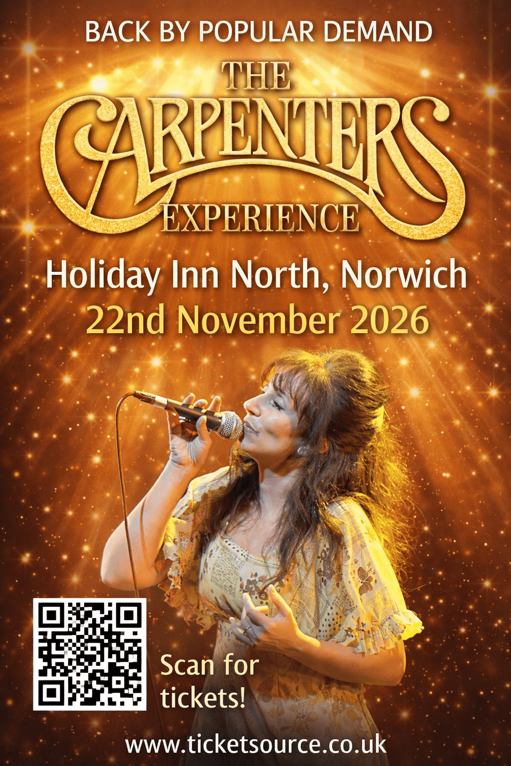 The Carpenters Experience is coming to town for an evening of non-stop hits – it’s yesterday once more.