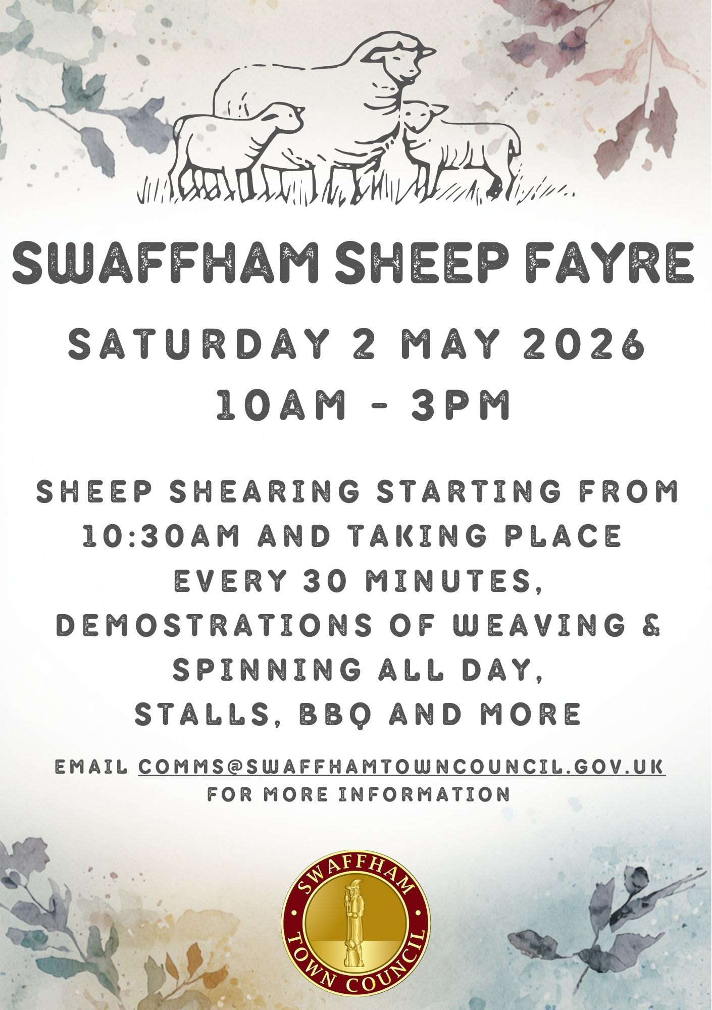 Join us in Swaffham for a fun day celebrating rural traditions at the Swaffham Sheep Fayre on Saturday 2 May 2026, 10am–3pm. Enjoy live sheep shearing demonstrations every 30 minutes from 10:30am, alongside weaving and spinning demonstrations, stalls, a BBQ, and more. A great day out for all ages.