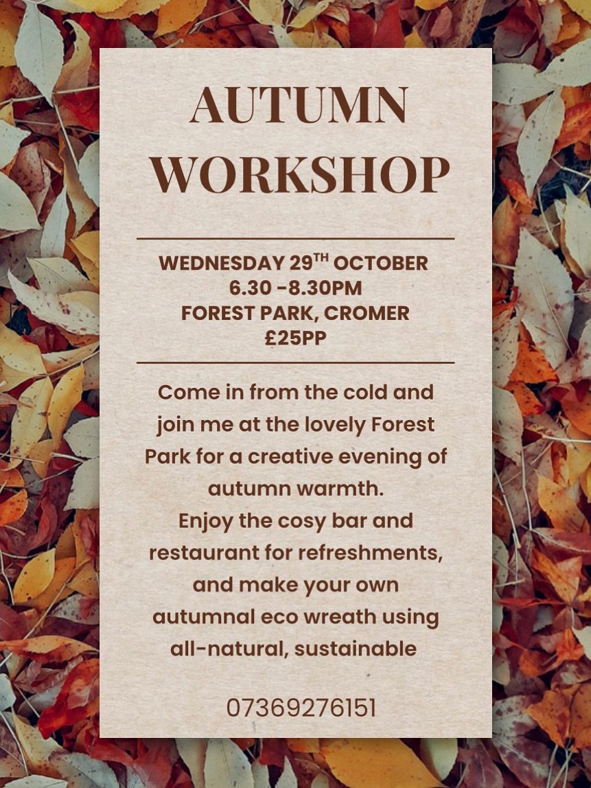 Autumn Wreath Workshop at Forest Park, Cromer. Discover one of Cromer’s best-kept secrets! Forest Park’s bar and restaurant are open to the public, serving delicious meals, drinks, and coffees. Join me for a cosy Autumn Wreath Workshop and create your own seasonal design. £25 per person * food and drink not included, but why not […]