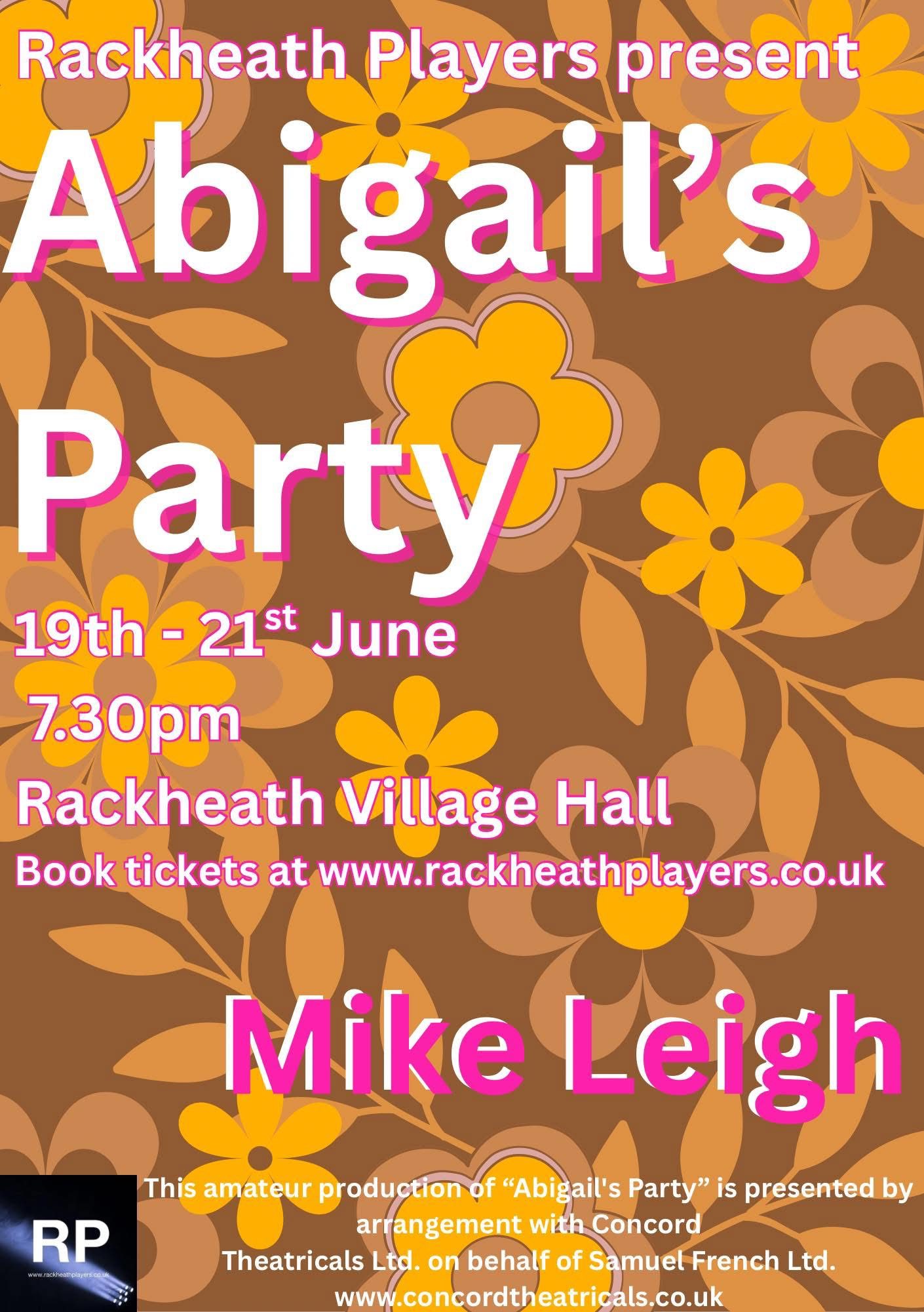Rackheath Players' June production of Abigail's Party by Mike Leigh. Abigail’s Party is Mike Leigh’s iconic suburban comedy of manners, set in 1970s Essex. Over drinks, cheesy nibbles, and Demis Roussos records, Beverly and Laurence host a painfully awkward gathering for their neighbours. As the night wears on and the alcohol flows, polite conversation gives […]