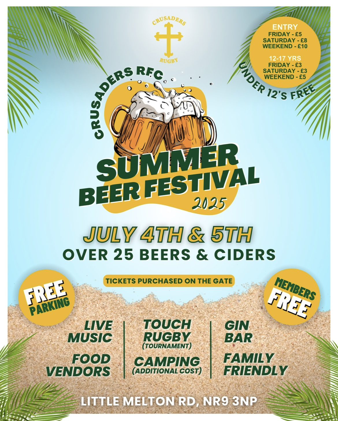 ☀️🍺 𝗚𝗲𝘁 𝗿𝗲𝗮𝗱𝘆 𝗳𝗼𝗿 𝘁𝗵𝗲 𝘂𝗹𝘁𝗶𝗺𝗮𝘁𝗲 𝘀𝘂𝗺𝗺𝗲𝗿 𝘄𝗲𝗲𝗸𝗲𝗻𝗱 𝗮𝘁 𝗖𝗿𝘂𝘀𝗮𝗱𝗲𝗿𝘀! Join us July 4th & 5th for our legendary Summer Beer Festival – over 25 beers and ciders, live music, delicious food, a Gin Bar, camping, touch rugby, and family fun all weekend long! What more could you want? 🎟️𝗘𝗡𝗧𝗥𝗬: Friday – £5 | Saturday […]