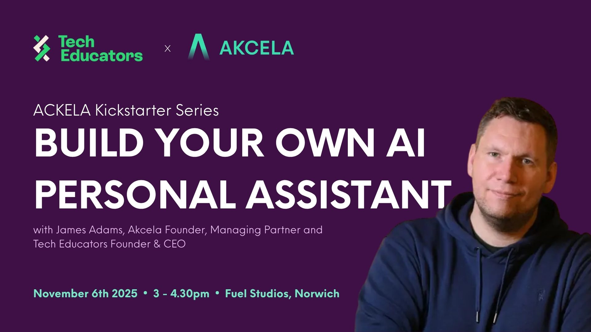 Akcela and Tech Educators are excited to invite you to our upcoming interactive workshop: Build your own AI personal assistant! Join us for our next Akcela Kickstarter series event, a series of expert talks and workshops throwing light and insight into all areas of starting and scaling a business. In this event we will discover […]